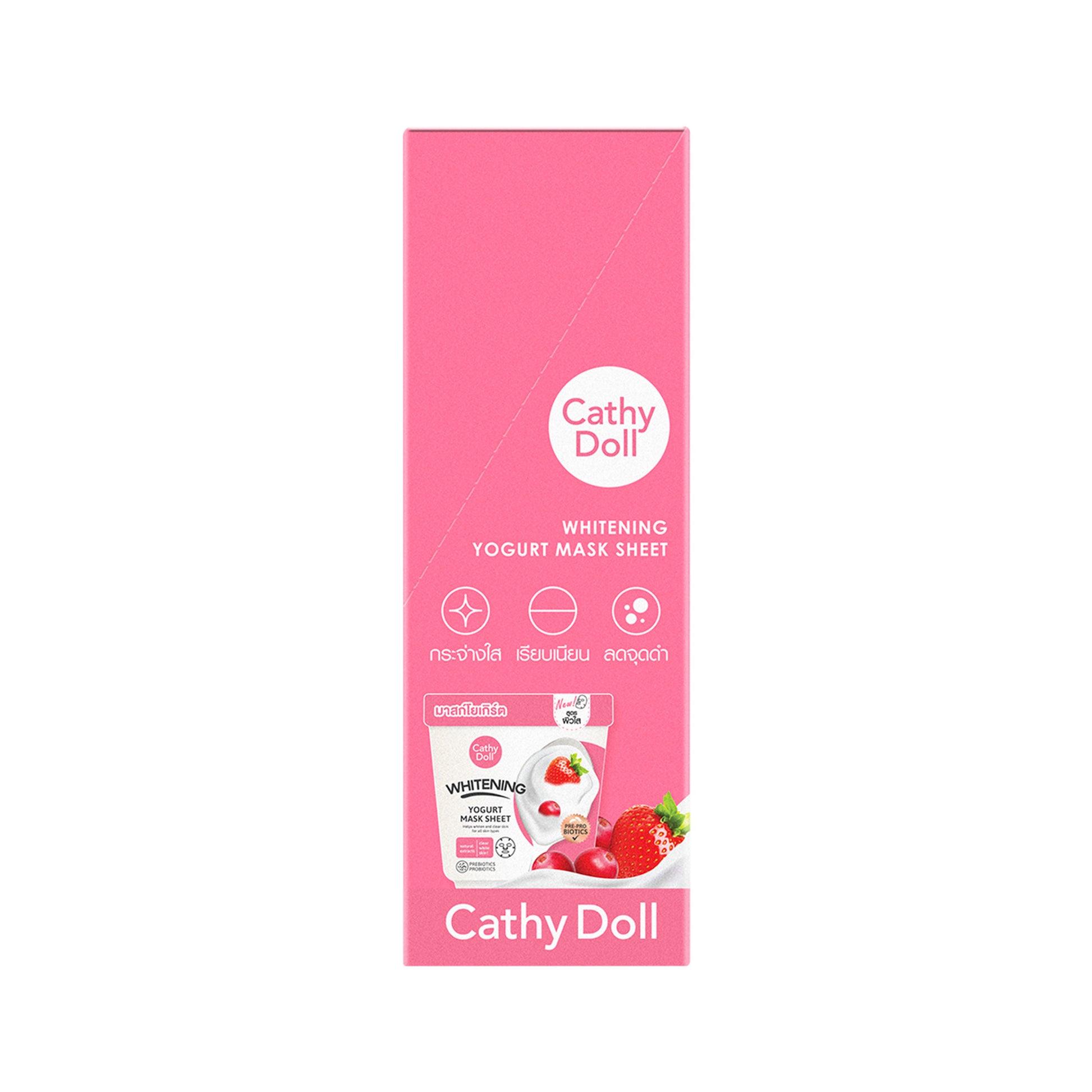 Give your skin a delicious boost of brightness and clarity with the Cathy Doll Whitening Yogurt Mask Sheet. This soft, skin-hugging mask blends Yogurt Essence, Prebiotics + Probiotics, and Natural Brightening Extracts to lighten dark spots, reduce dullness, and improve overall skin clarity.